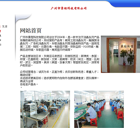 觸摸屏液晶,商用工控液晶,廣告機(jī)液晶網(wǎng)站建設(shè)公司,做網(wǎng)站優(yōu)化關(guān)鍵詞排名SEO,營銷型,手機(jī)網(wǎng)站建設(shè),響應(yīng)式,品牌型,電商/門戶,觸摸屏液晶,商用工控液晶,廣告機(jī)液晶外貿(mào)型網(wǎng)站建設(shè). 廣州市景程科技有限公司創(chuàng)立于2004年,是一家專注于液晶系列產(chǎn)品銷售的高科技公司