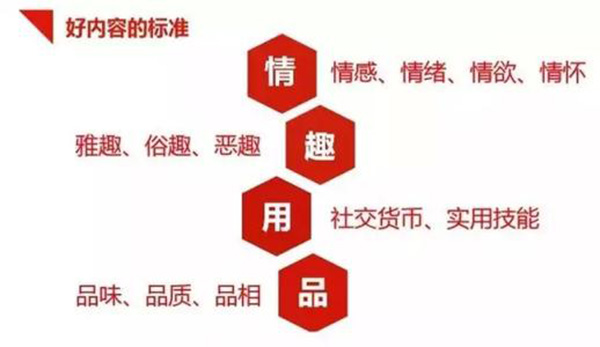 拆解出來,內(nèi)容運營的四要素:1、方式:產(chǎn)出內(nèi)容和重組內(nèi)容;2、目的:滿足用戶內(nèi)容消費的需求;3、效果:使用次數(shù)和品牌認(rèn)知度;4、能力:策劃和文案。